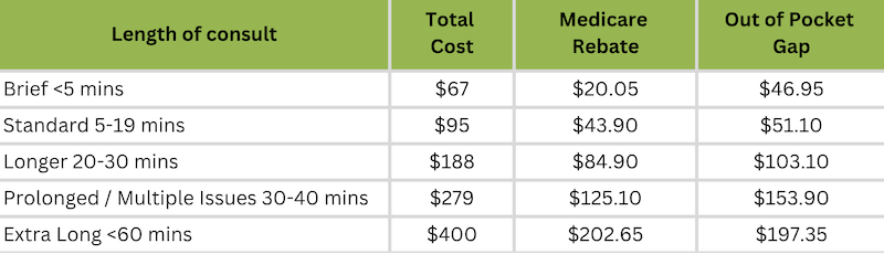 Gladstone Street Medical clinic is a private billing clinic. The below table are the indicative fees from 1st July 2025, Associate Doctors can set their own fees and reception will advise you at time of booking of the fees applicable to your appointment. Fees apply to all consultations.